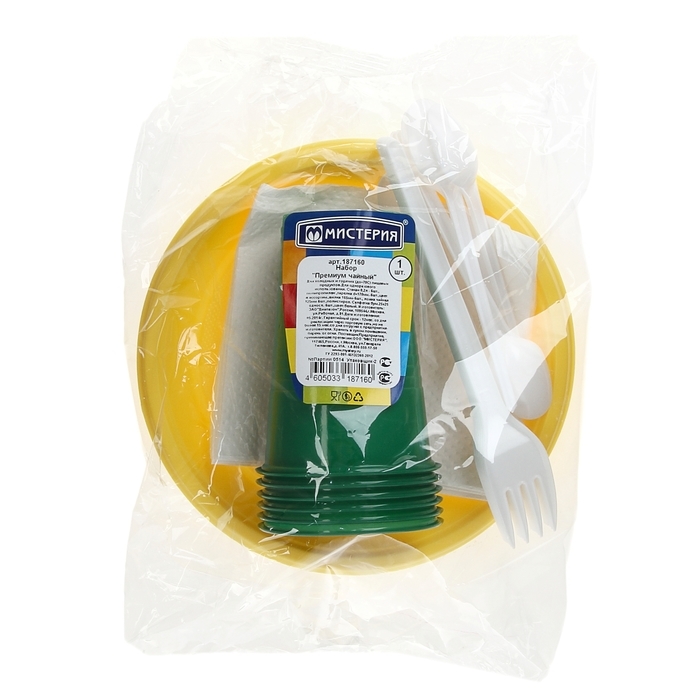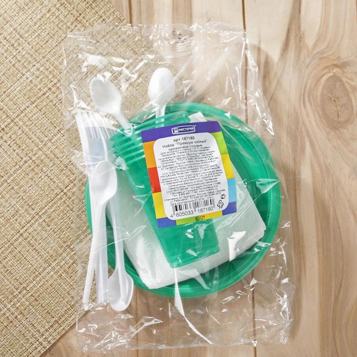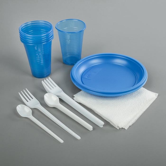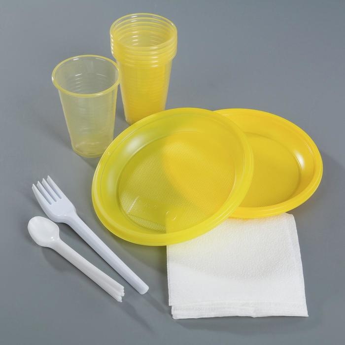 Набор пластиковой одноразовой посуды «Премиум», 6 персон, цвет МИКС