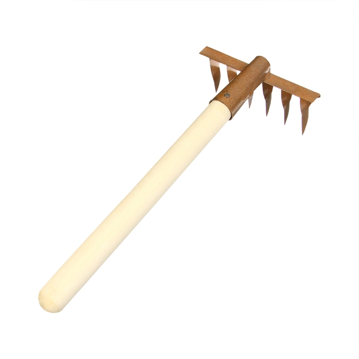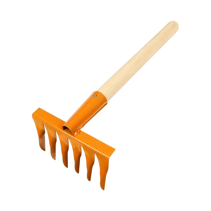 Малые прямые грабли, 6 витых зубцов, длина 31 см, металл, деревянная ручка