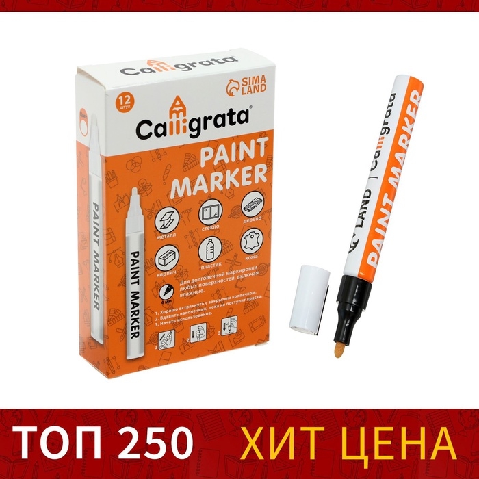 Маркер-краска великолепно пишет по любому типу поверхности: бумаге, дереву, пластику, металлу, натуральному и искусственному камню, стеклу. Морозоустойчив, не выгорает на солнце. Маркер может писать по горячей (до 130 градусов) или загрязнённой, в том числе и маслами, поверхности. При этом исключаются растекания, неровности и преждевременное пересыхание.