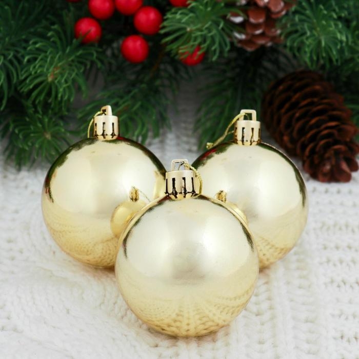 Набор шаров пластик d-6 см, 6 шт "Глянец" золото