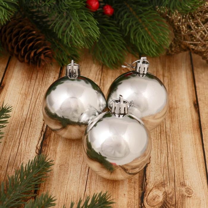 Набор шаров пластик d-6 см, 6 шт "Глянец" серебро