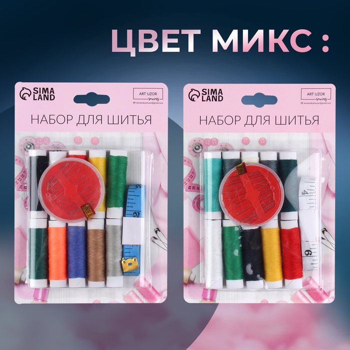 Швейный набор, 21 предмет, в блистере, цвет МИКС