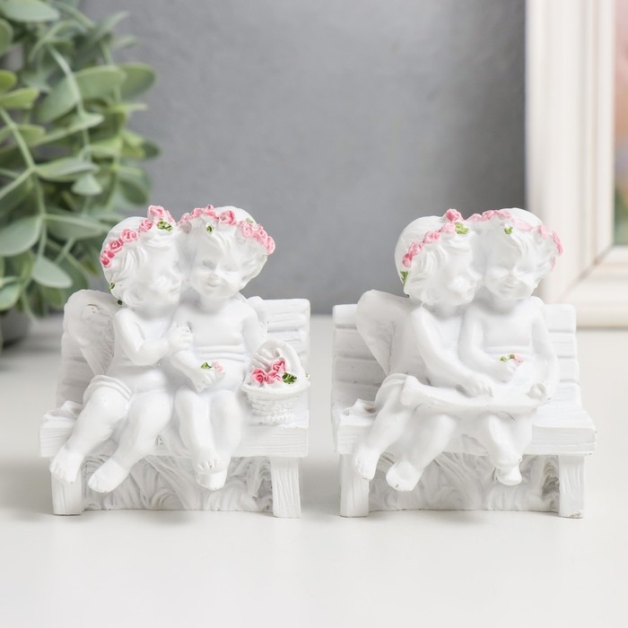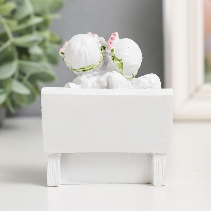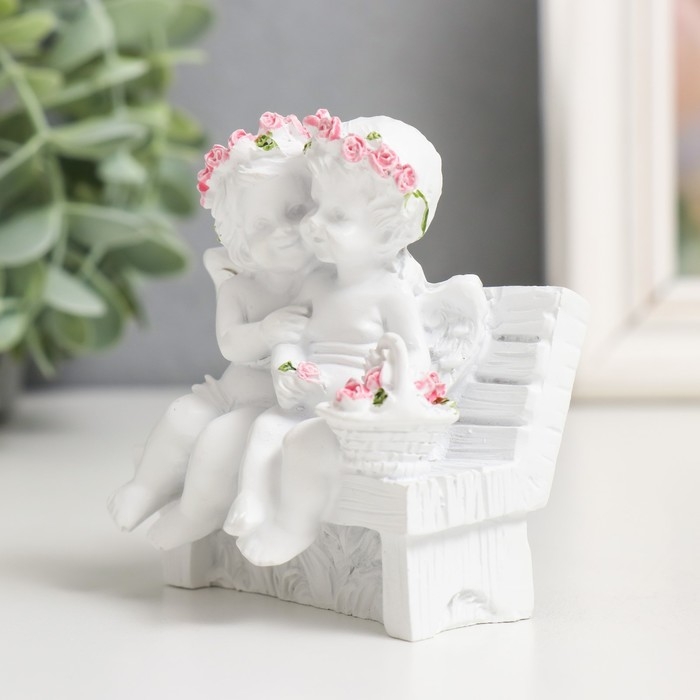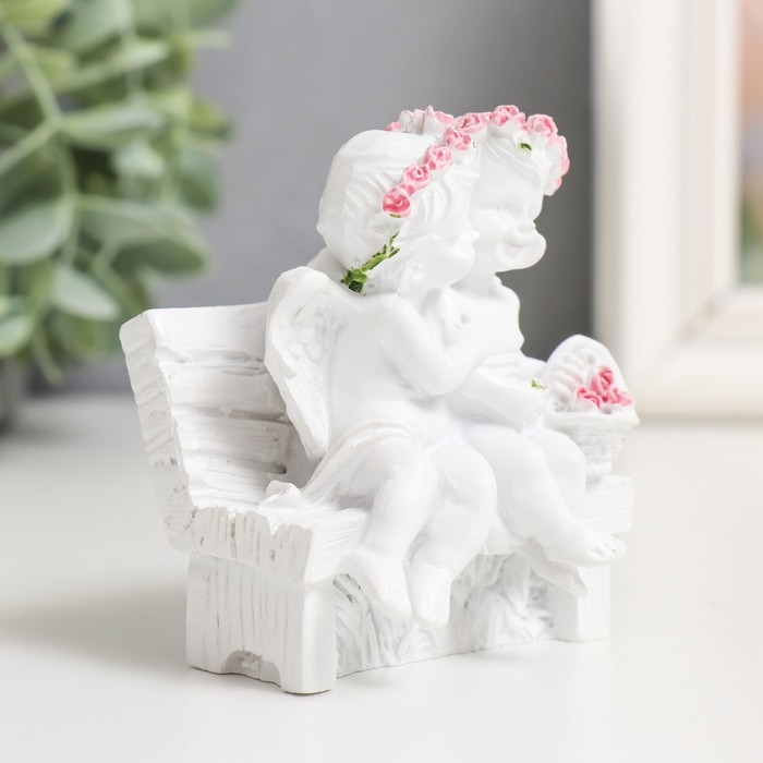 Сувенир "2 ангелочка в розовом веночке на скамейке" МИКС 8х7х5 см