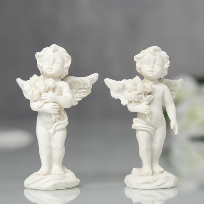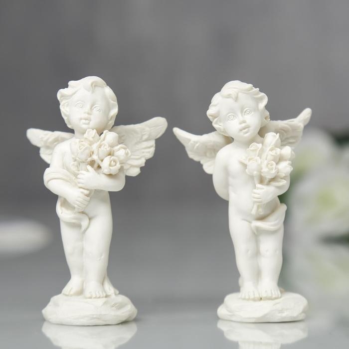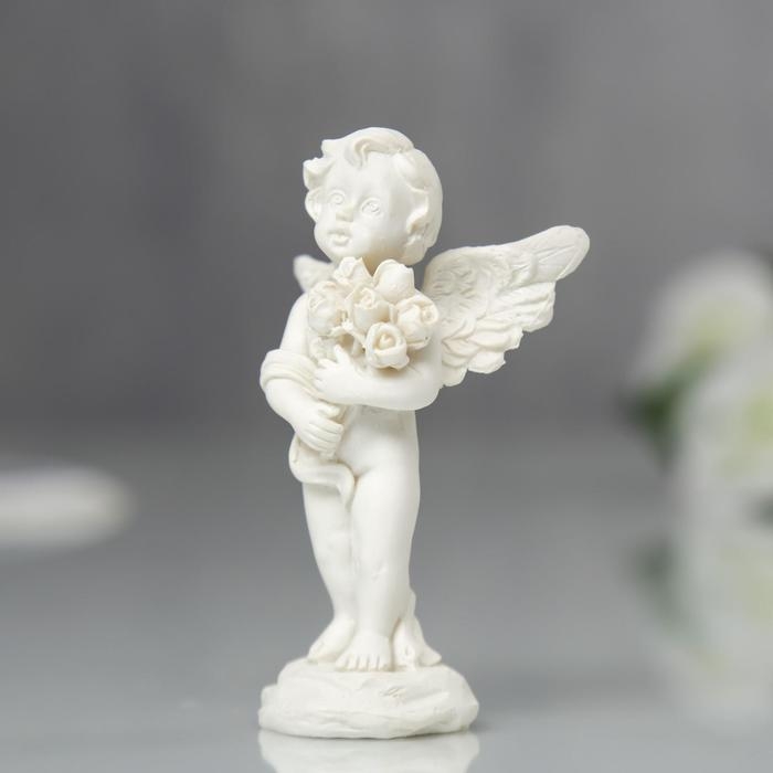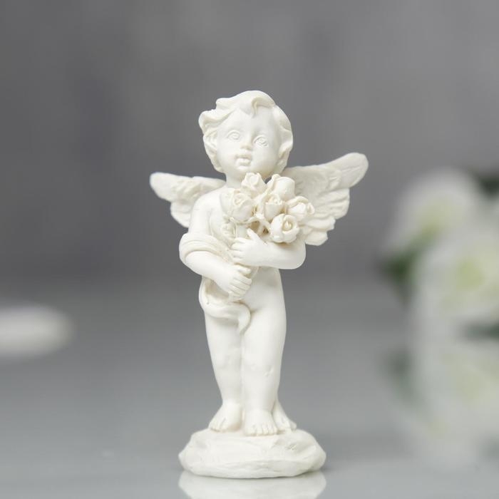 Сувенир полистоун "Ангелочек с букетом роз" МИКС 7,2х4,5х2,8 см