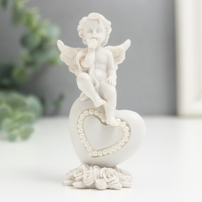 Сувенир полистоун "Ангелок на сердечке из страз" МИКС 9х4,3х3 см