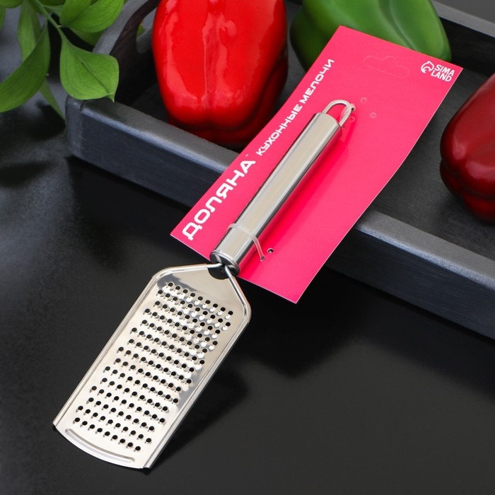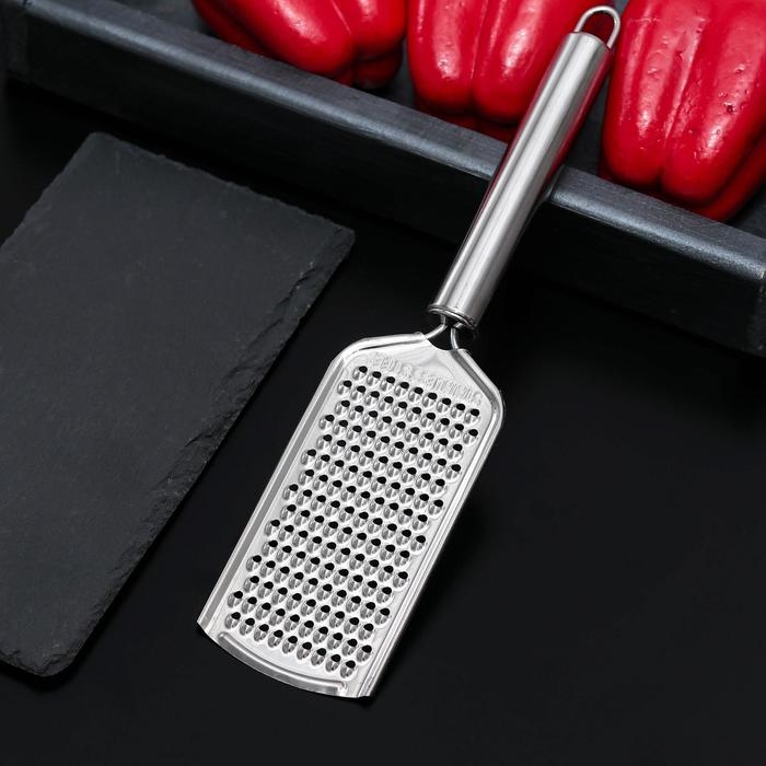 Тёрка для сыра Доляна «Металлик», 24×6 см, мелкая, с ручкой, цвет серебристый