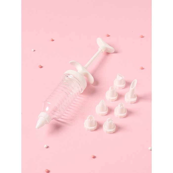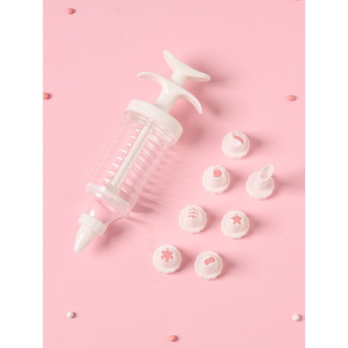 Шприц кондитерский Доляна «Фобос», 4 насадки, 15×2,5×2,5 см, цвет розовый