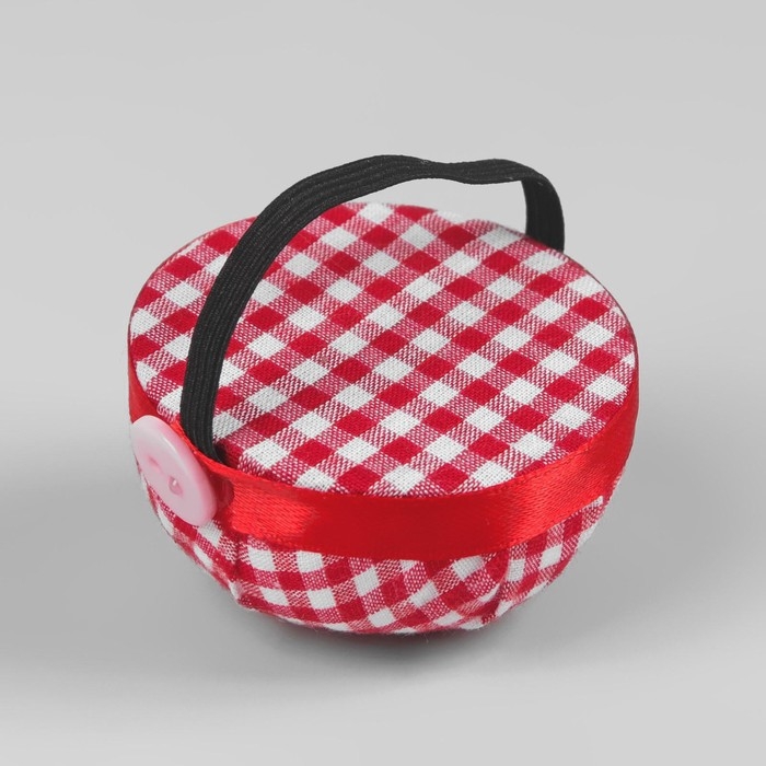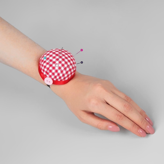 Игольница на руку «Клетка», d = 6 см, цвет красный/белый
