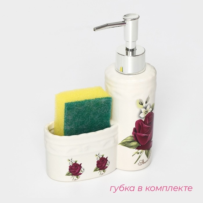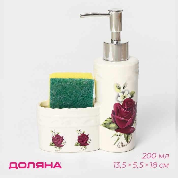 Дозатор для моющего средства с подставкой для губки Доляна «Роза», 200 мл