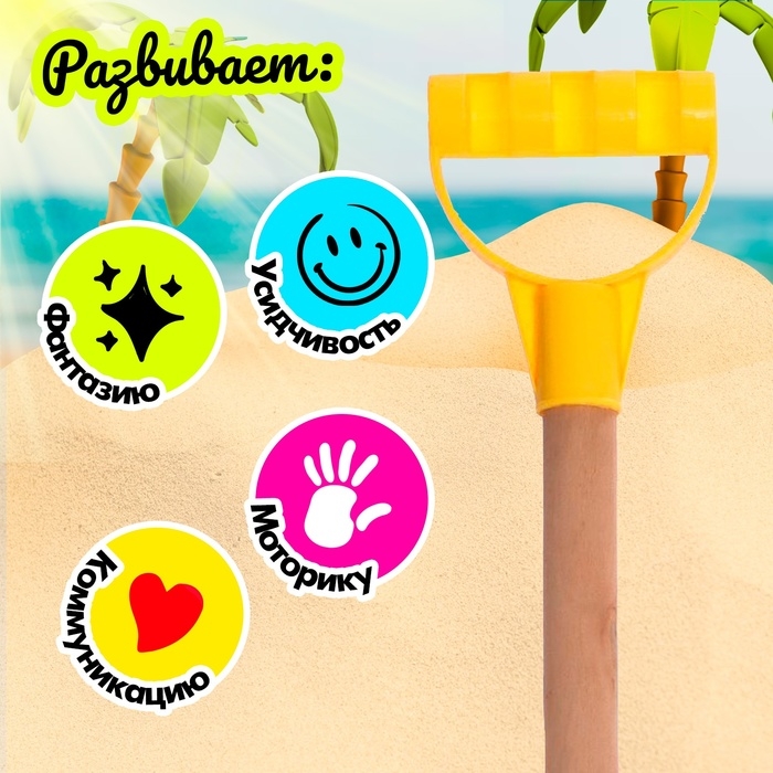 Играя с лопаткой, кроха разовьёт моторику рук, мышление и воображение, ведь юный скульптор сам придумывает формы построек и увлекательные сюжеты для игр с песочком.