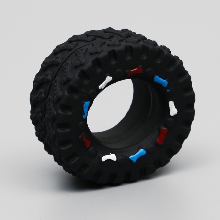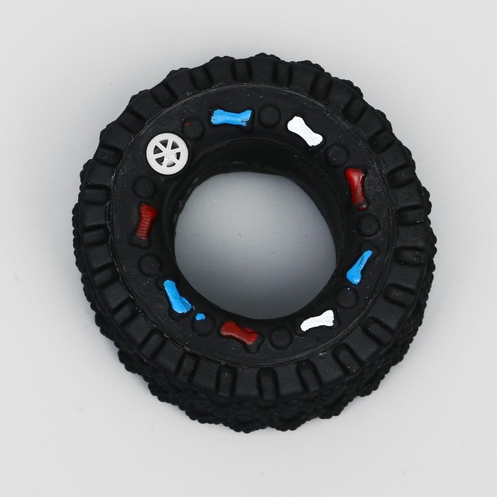 Игрушка пищащая "Покрышка" для собак, 8 см, чёрная