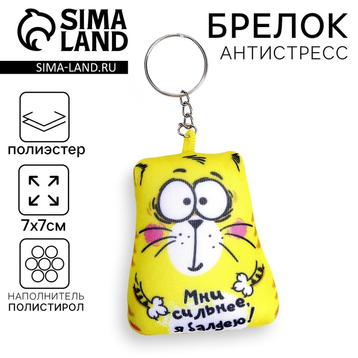 Брелок-антистресс «Мни сильнее, я балдею!», кот, 7х7 см