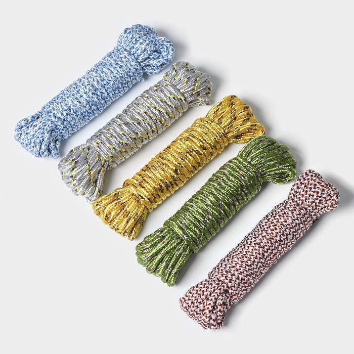 Верёвка бельевая Доляна, d=6 мм, длина 10 м, цвет МИКС