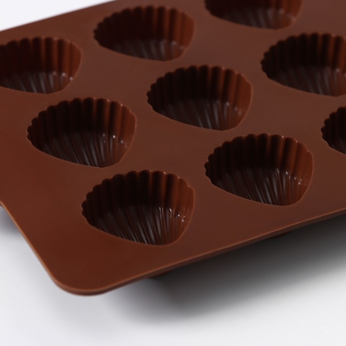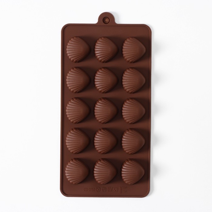 Форма для конфет и шоколада Доляна «Ракушки», силикон, 20.5×10.5 см, 15 ячеек (2.7×2.4 см), коричневая