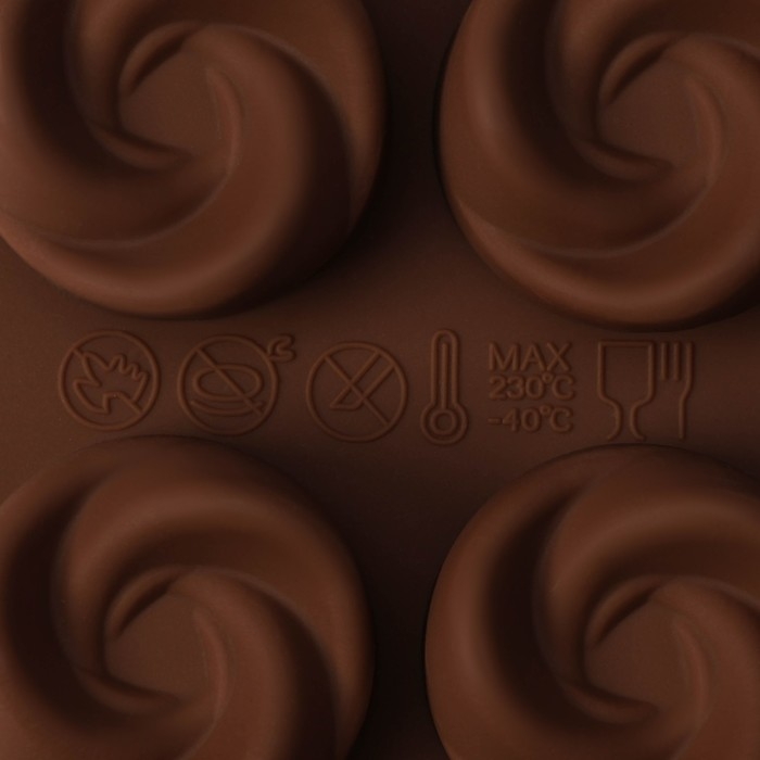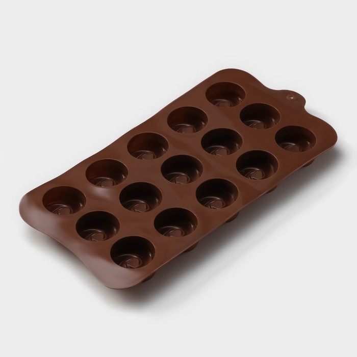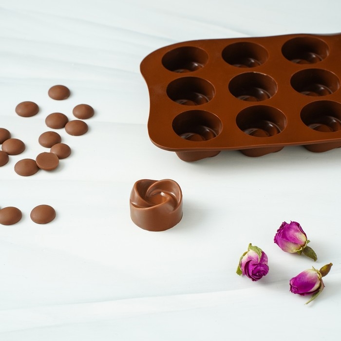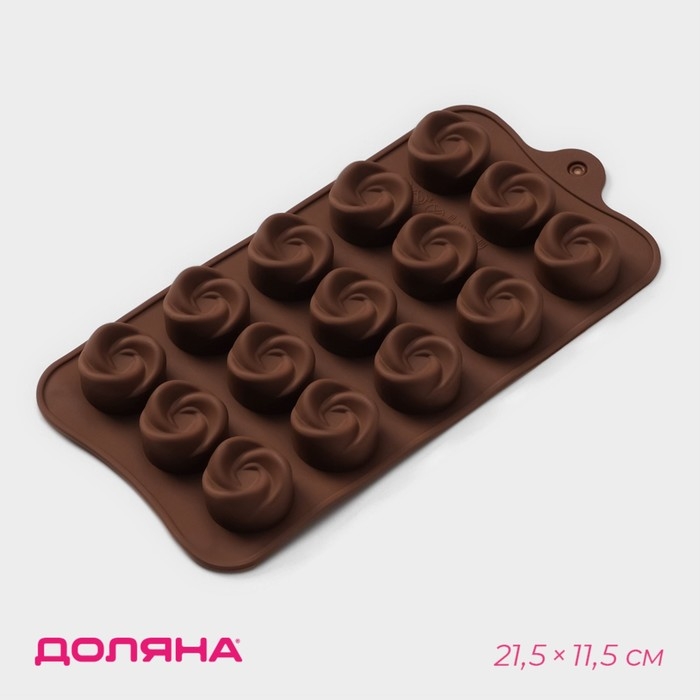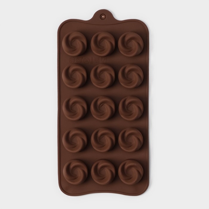 Форма для конфет и шоколада Доляна «Завиток», силикон, 21,5×11,5 см, 15 ячеек (d=2,8 см), цвет коричневый