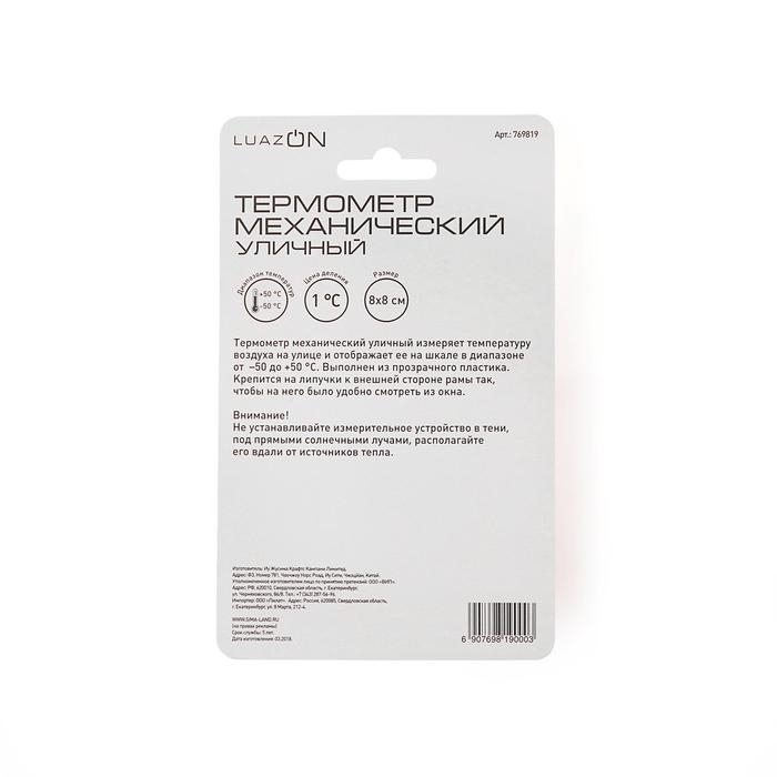 Термометр уличный, механический, квадратный, 8 х 8 см,