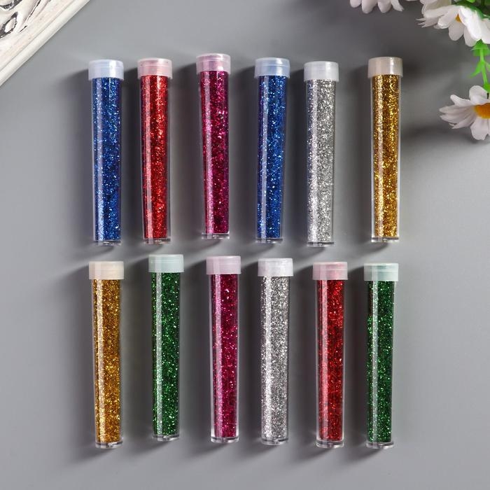 Глиттер (набор 12 шт) "Пудра яркая" в тюбике 3 грамма