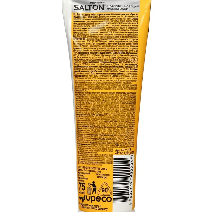 Крем для обуви SALTON в тубе Черный, 75мл
