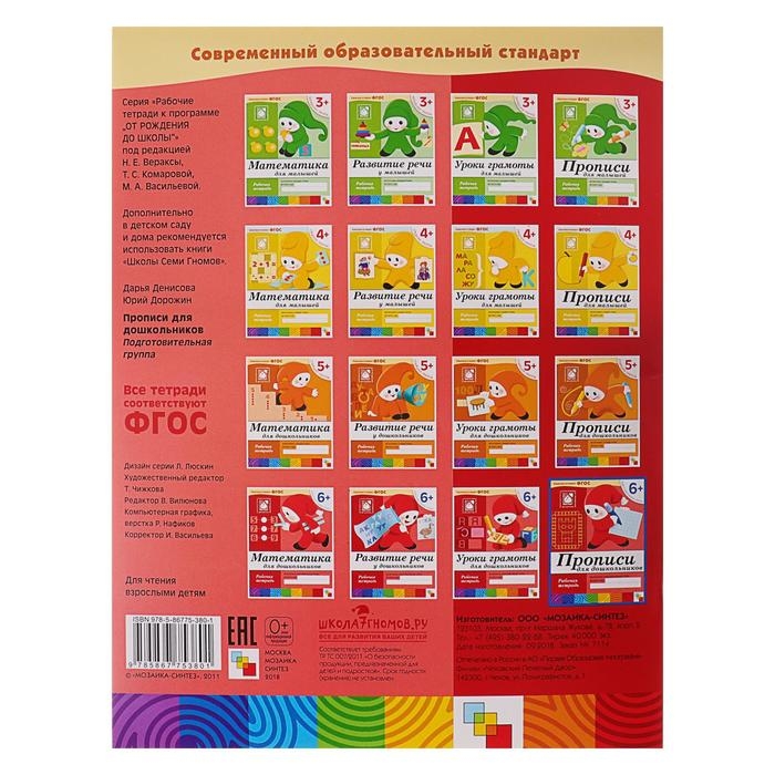 Рабочая тетрадь «Прописи для дошкольников», подготовительная группа, Денисова Д., Дорожин Ю.
