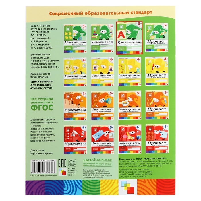 Рабочая тетрадь «Уроки грамоты для малышей», младшая группа, Денисова Д., Дорожин Ю.