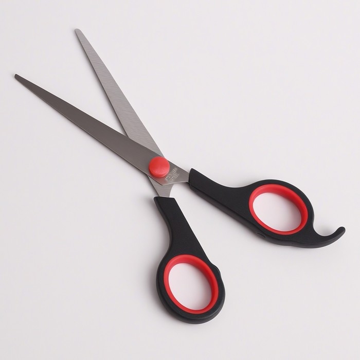 Ножницы парикмахерские с упором, лезвие — 7,5 см, цвет чёрный/красный