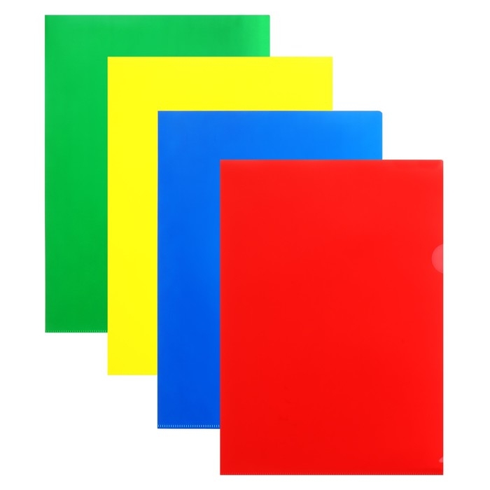 Набор папок-уголков А4, 180 мкм, Calligrata Стандарт, полупрозрачные, 4 штуки, микс