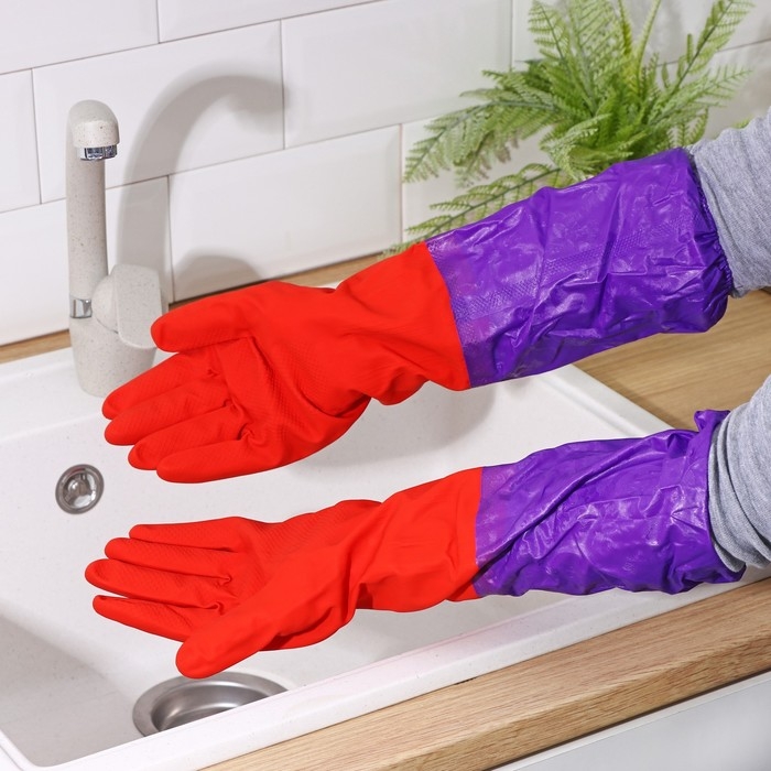 Перчатки хозяйственные Доляна, размер S, длинные манжеты, латексные, цвет красный