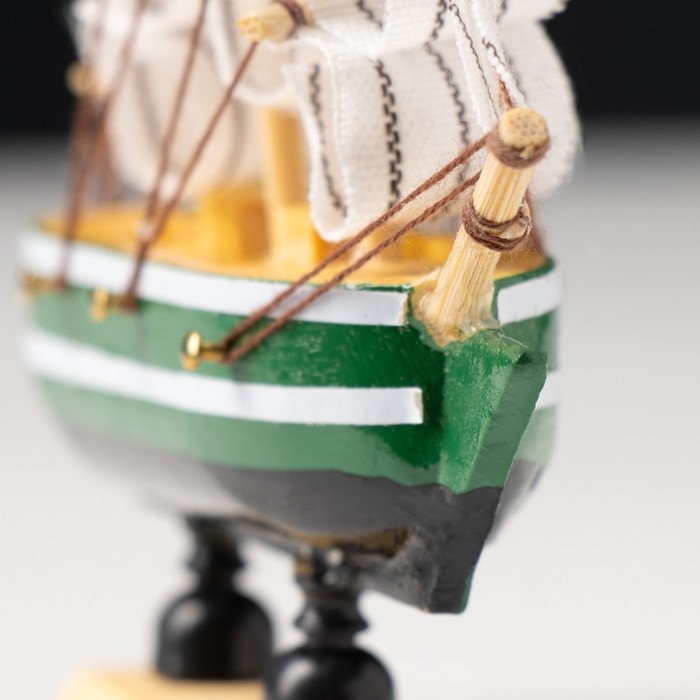 Корабль сувенирный малый «Клеймор», борта зелёные с белой полосой, паруса белые, 3×10×10 см принесет удачу своему обладателю