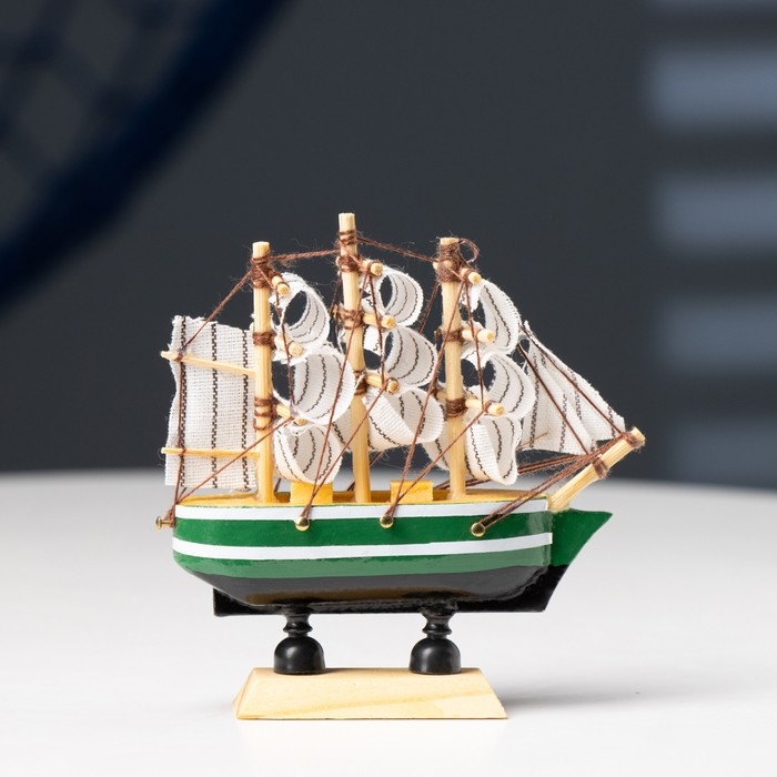 Корабль сувенирный малый «Клеймор», борта зелёные с белой полосой, паруса белые, 3×10×10 см