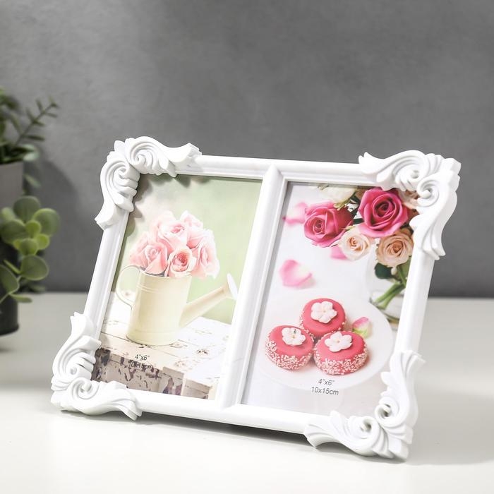 Фоторамка пластик на 2 фото 10х15 см "Птица счастья" белая 21х35 см