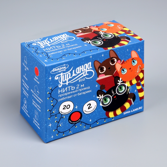Гирлянда «Нить» 2 м, IP20, прозрачная нить, 20 LED, свечение красное, 2 режима, AAх3