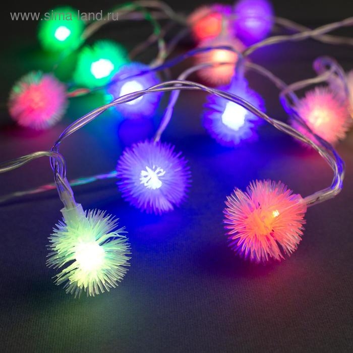 Гирлянда «Нить» 3 м с насадками «Ёжики», IP20, прозрачная нить, 20 LED, батарейки AAх3 (нет в комплекте), свечение мульти