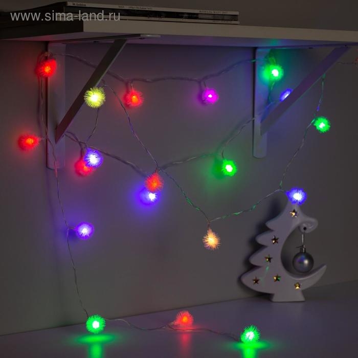 Гирлянда «Нить» 3 м с насадками «Ёжики», IP20, прозрачная нить, 20 LED, свечение мульти (RG/RB), мигание, USB