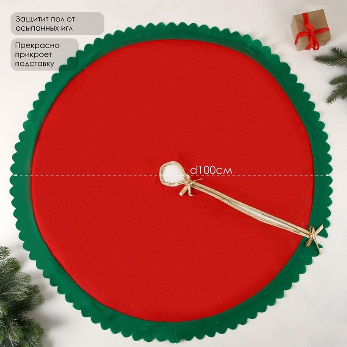 Полянка под ёлку "Зелёные рюши" 100 см, красно-зелёный