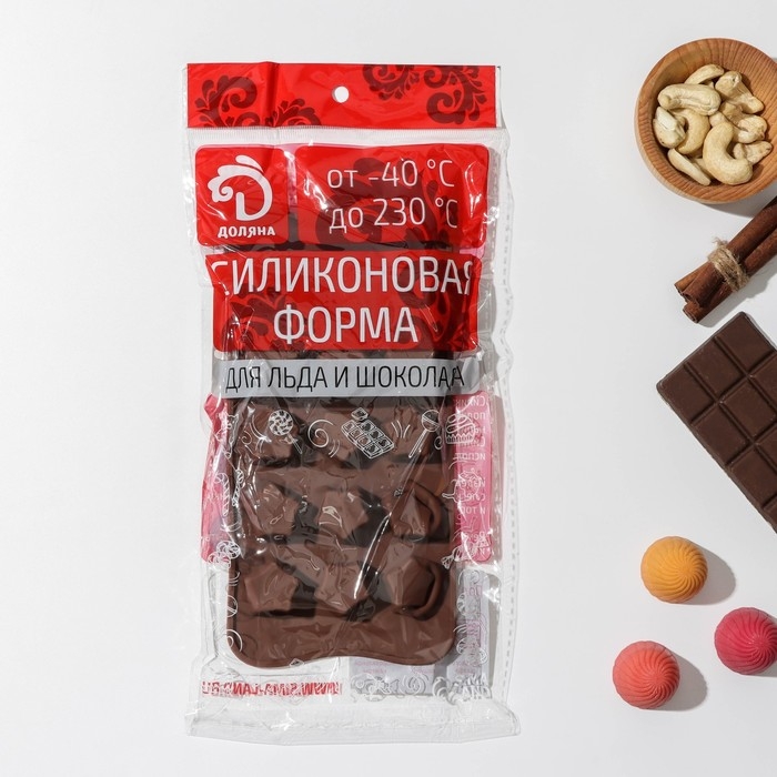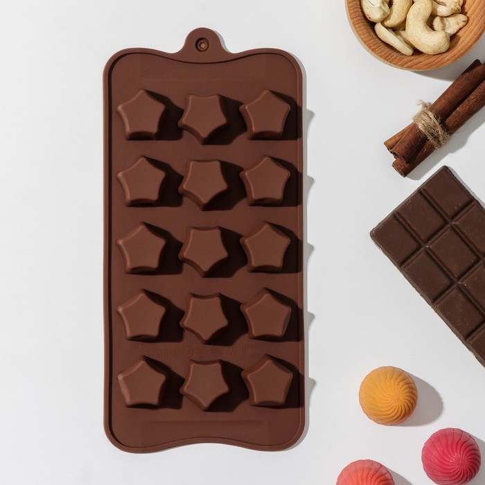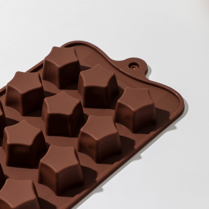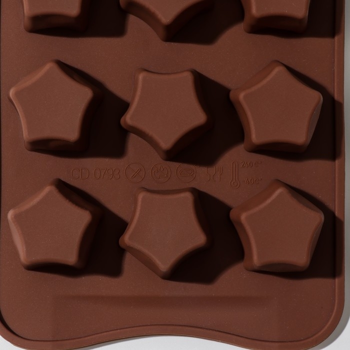 Форма для конфет и шоколада Доляна «Звёздочки», силикон, 21×10×2 см, 15 ячеек, цвет коричневый