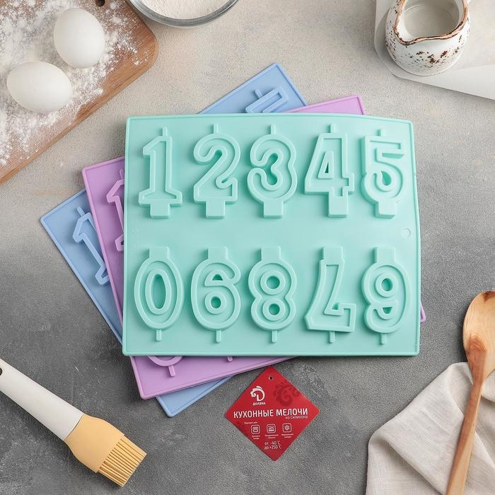 Форма для шоколада Доляна «Цифры», силикон, 26×21 см, 10 ячеек (7×4 см), цвет МИКС