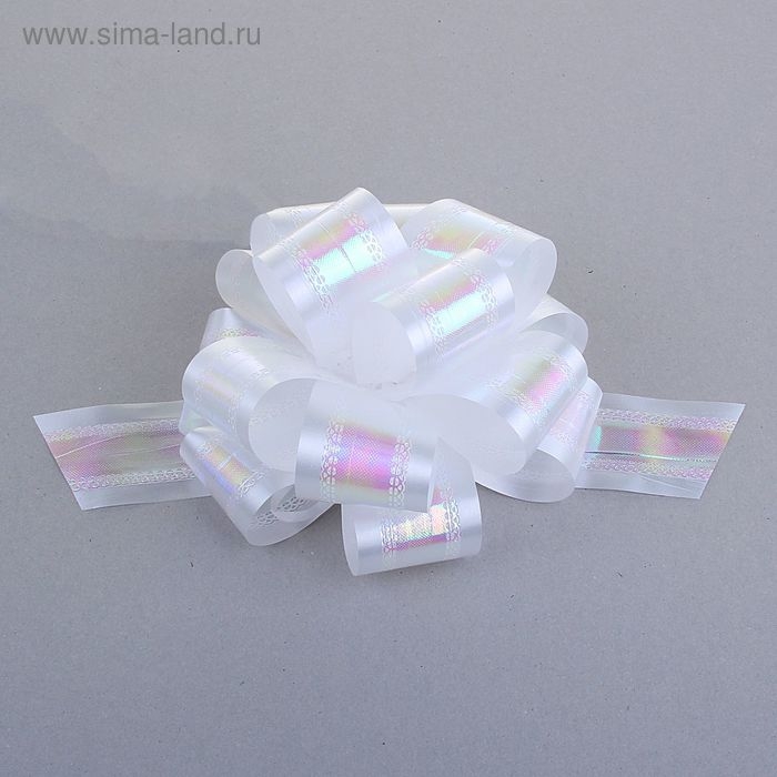 Для того чтобы собрать бант, надо потянуть за две ленточки, находящиеся между широкими лентами, удерживая широкие ленты в месте спайки. Бант собирается за несколько секунд.
