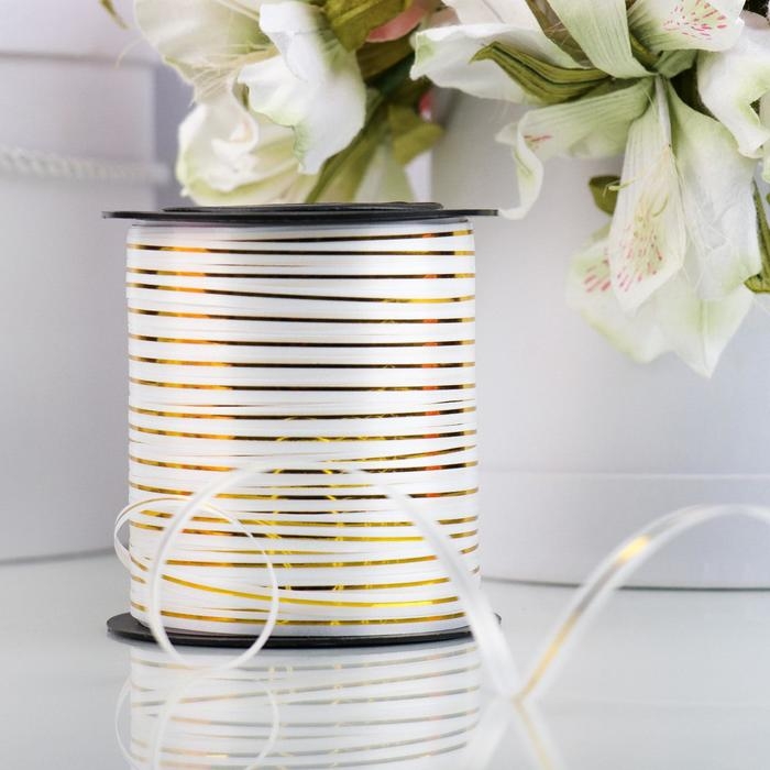 Лента упаковочная, белая с золотой полосой, 5 мм х 225 м