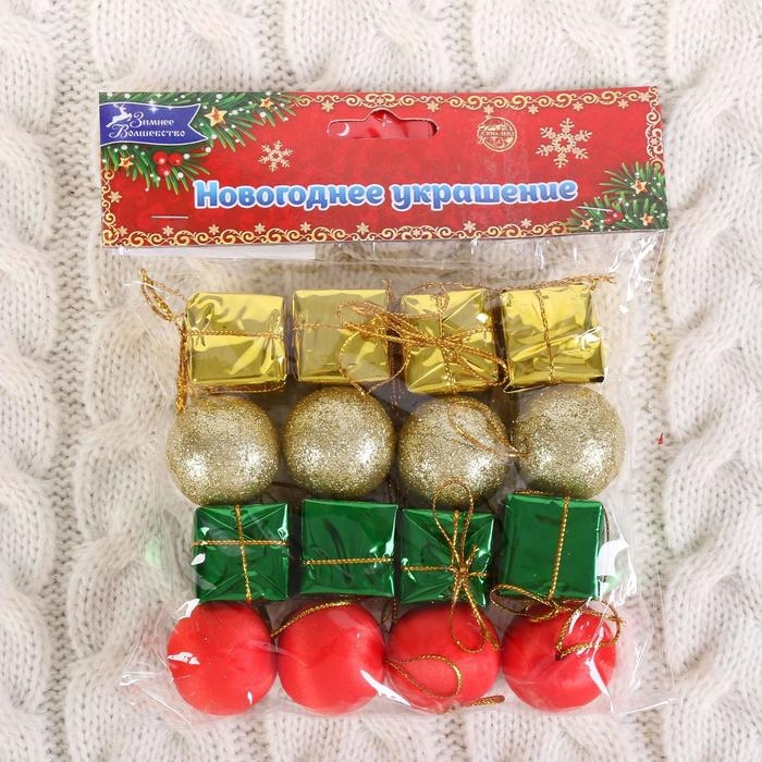 Набор украшений пластик 16 шт "Сочельник" (8 подарков,8 шариков) микс