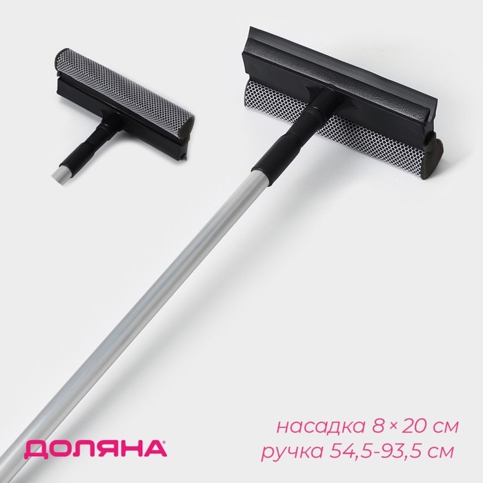 Щётка для окон Доляна, телескопической ручка 60(97) см, водосгон 20 см, насадка из поролона 20×8 см