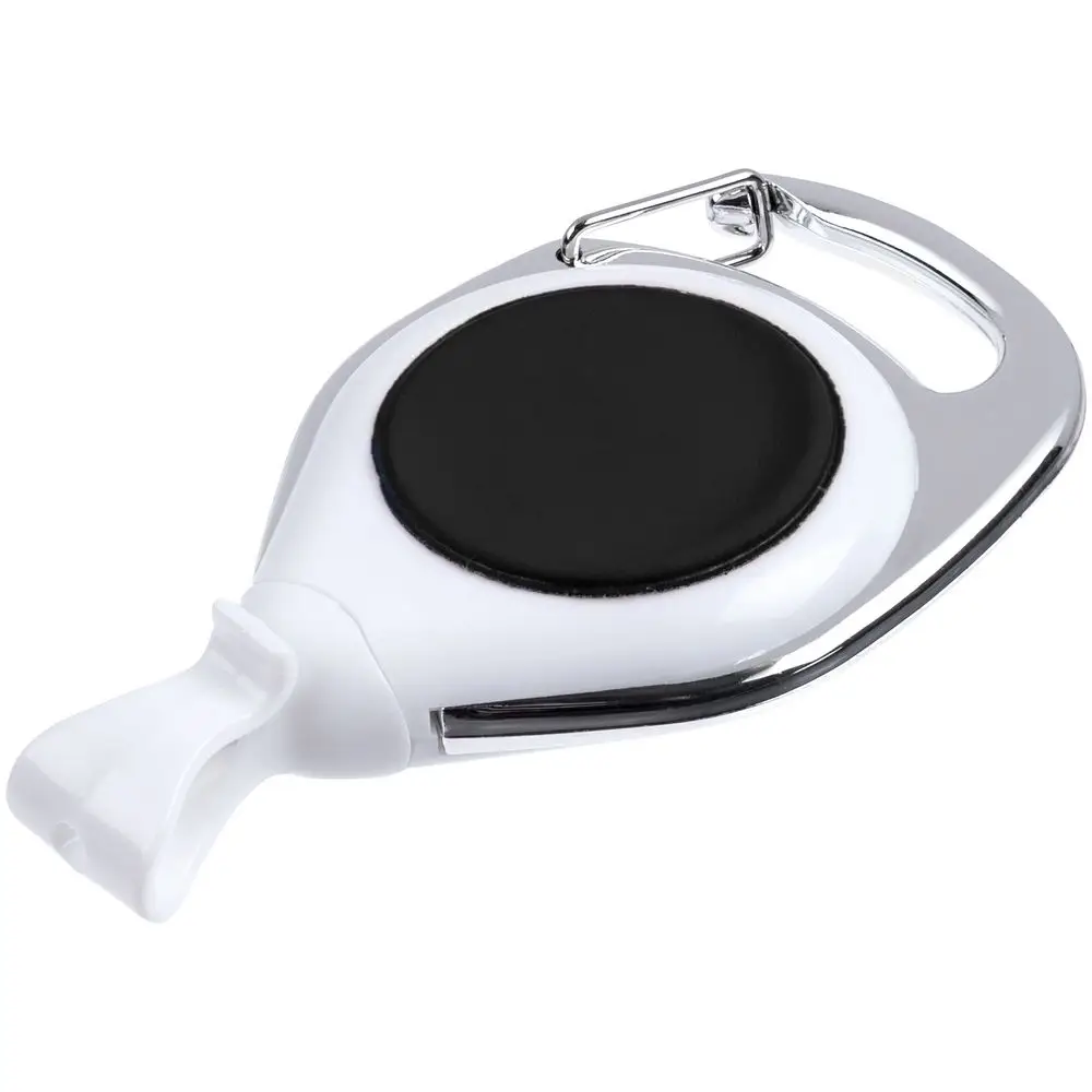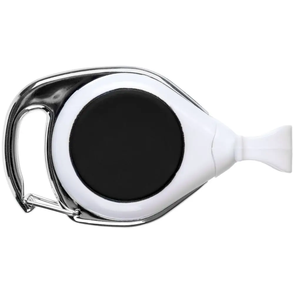 Ретрактор крепится к одежде с помощью клипа или карабина, а с другой стороны на можно подвесить бейдж, пропуск или магнитную карту. В корпусе спрятан сворачивающийся шнур, который позволяет при необходимости демонстрировать содержимое держателя, не снимая его.