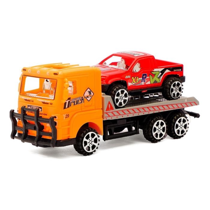 Грузовик инерционный «Эвакуатор» с машиной, цвета МИКС.
