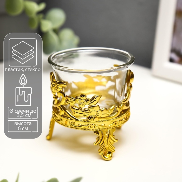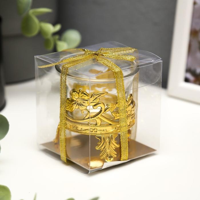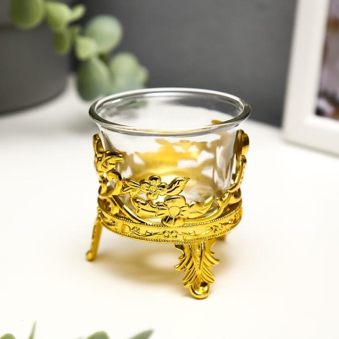 Подсвечник стекло "Фантазия" 6*6,3*6,3 см, золото