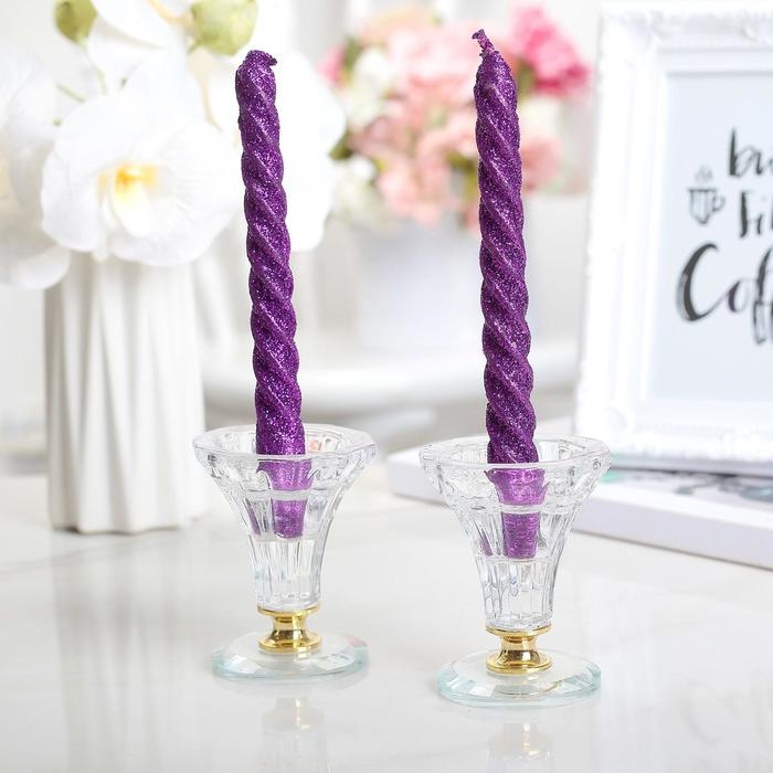 Набор свечей витых, 1,5х 15 см, 2 штуки, блестка, сиреневый