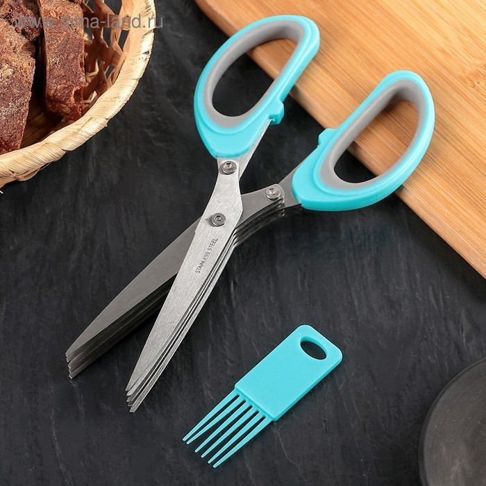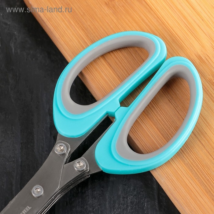 Ножницы кухонные для зелени Доляна «Кольца», 19 см, цвет голубой