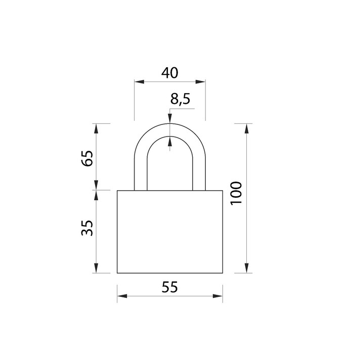 Замок навесной, тип 7, 52х95 мм, 3 ключа