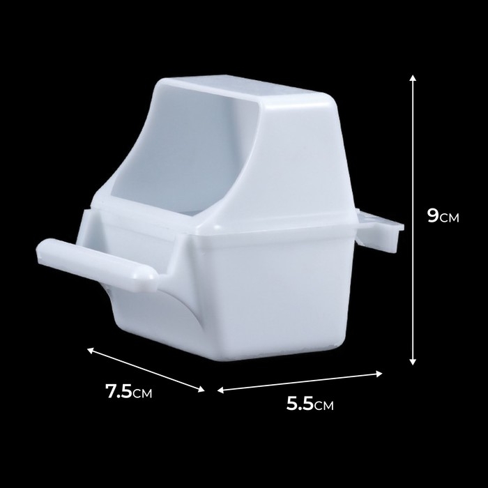 В данную емкость можно засыпать корм или налить воду на Ваше усмотрение. Изделие легко крепится при помощи двух пластиковых крючков в любом месте клетки. Миска идеально подойдет для средних и маленьких птиц: попугайчиков, амадинов, канареек, неразлучников, волнистиков. Кормушка выполнена из прочного и нетоксичного глянцевого пластика, а потому - совершенно безвредна для пернатых питомцев.