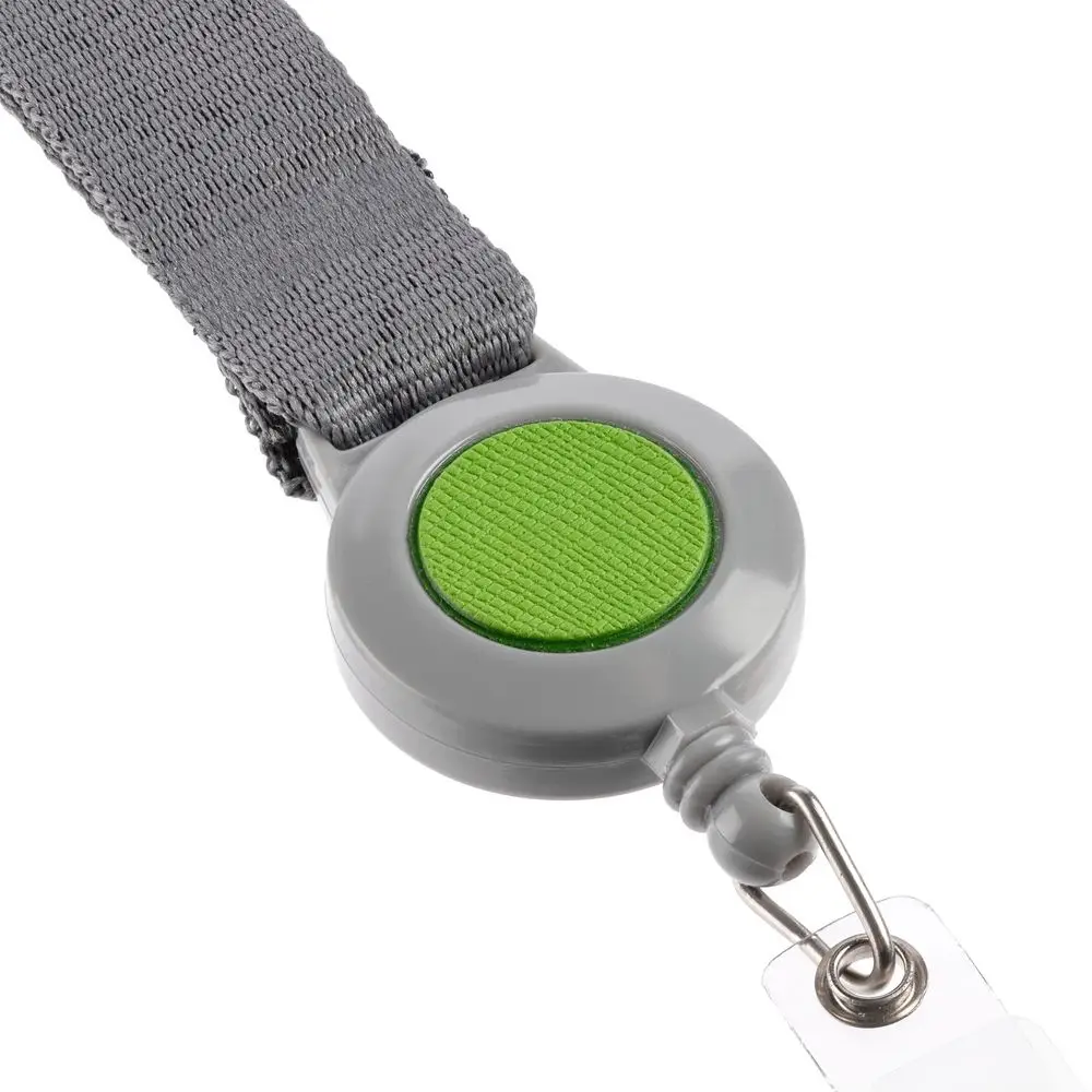 Лента для бейджа с ретрактором Devon, серая с зеленым