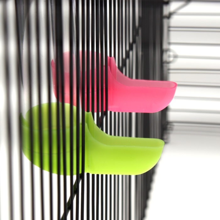 Набор из 2 поилок для птиц легко установить в любое жилище пернатого.