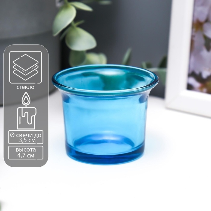 Подсвечник стекло 4,7 x 6,2 x 6,2 см "Глянец", голубой
